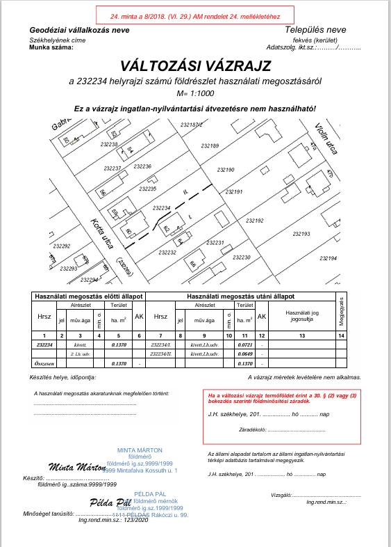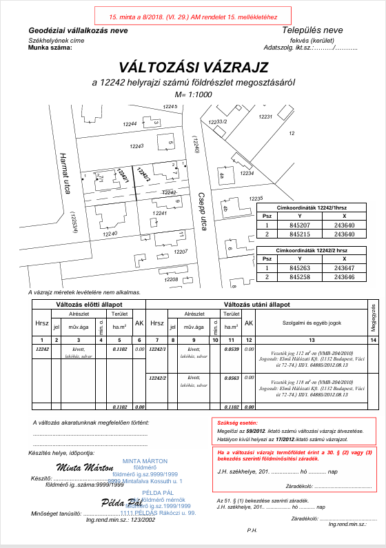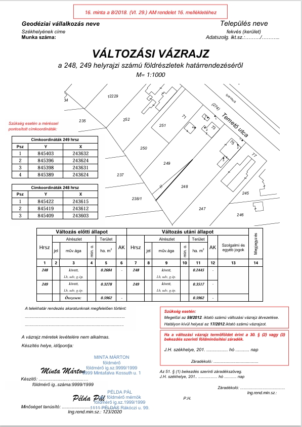 Földmérő megbízása – elkészíti a telekalakítási vázrajzot.